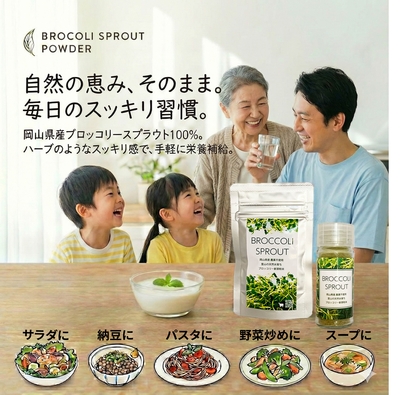 ブロッコリースプラウトパウダー(10g) 販売価格 1,078円(税込み) 会員価格 (税込み) 通常価格 (税込み) 在庫 商品コード JANコード さっと一振り!スパイスボトル(10g) 詰め替えにも!チャック付きアルミ袋(10g) お得!ボトル(10g)&アルミ袋(10g)セット もっとお得!ボトル(10g)×3本セット さらにお得!アルミ袋(10g)×3袋セット みんなでお得!アルミ袋(10g)×12袋セット 数量 1 2 3 4 5 6 7 8 9 10 カートに入れる カテゴリー おいしくてきれいになる食品 CATEGORYカテゴリー 広島杜仲茶 おいしくてきれいになる食品 グルグルコンポストバッグ 石けん・スキンケアオイル 大正の宿・琴ヶ浜 琴風亭 (きんぷうてい)